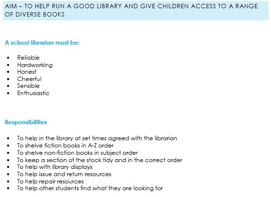 The school librarians have been appointed, following a rigorous application and interview process carried out by Mrs Marklew.